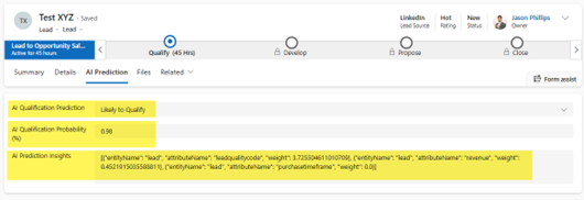 - Dataverse : Lead entity as training data source and prediction output store
