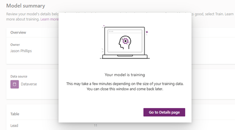 - Click Train training takes approximately 5–10 minutes