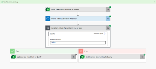 - Power Automate : automated flow to run predictions on new/updated leads