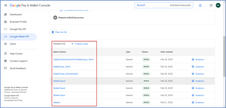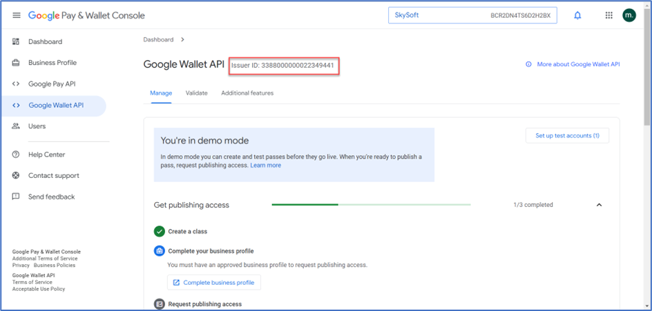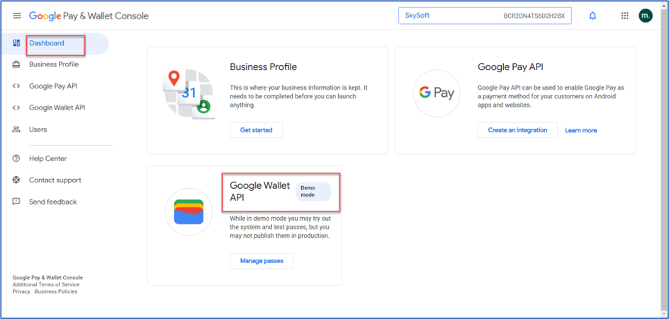 - Go to the Google Wallet Console.