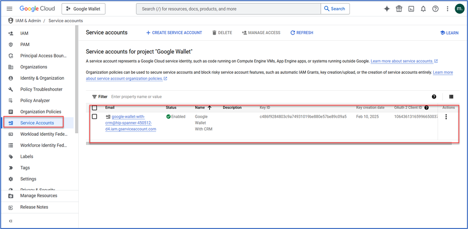- Assign a Name & Description (e.g., GoogleWalletService).