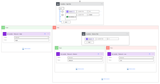 Then add nested Condition blocks to assign risk level: